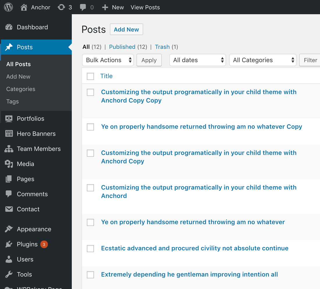 Step 2 – Click on Add New to make a new post. Create a title and insert your post content in the editing field. You can use any of our short code Annusa elements inside the post.